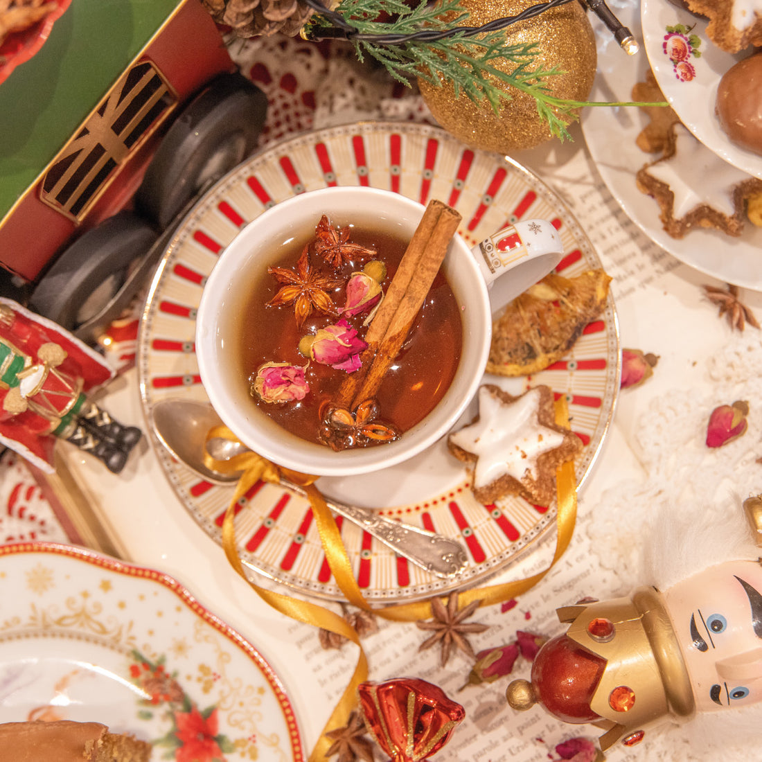 Comme une brioche sortant du four, « Douceurs de Fêtes » infuse sa magie dans un thé noir aux accents de panettone, chaleureux et enveloppant. Quand les fêtes approchent, les tablées s’emplissent de rires épicés, tandis que sous la nappe de petites souris pâtissières roulent la pâte, saupoudrent la cannelle et posent la touche finale sur les pâtisseries.