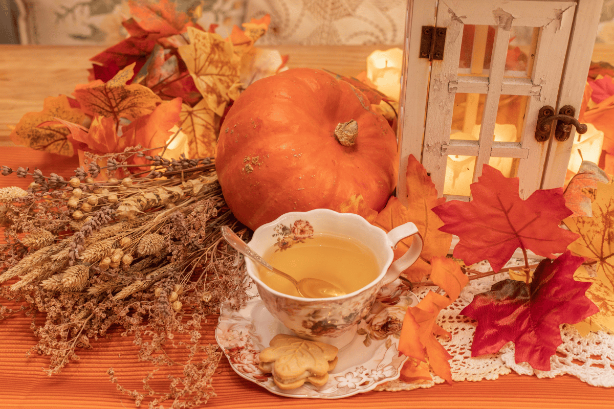 Au cœur de Pumpkin Valley, le soleil nimbe les champs de citrouilles d’une lueur mordorée, le vent murmure aux érables tandis que le vieux rocking-chair vous berce sous le porche. Entre vos mains, une tasse de thé noir qui n’est pas sans vous rappeler le crumble citrouille, pomme, et sirop d’érable de votre enfance. Le temps ralentit et l’automne se fait doux comme un rêve éveillé.