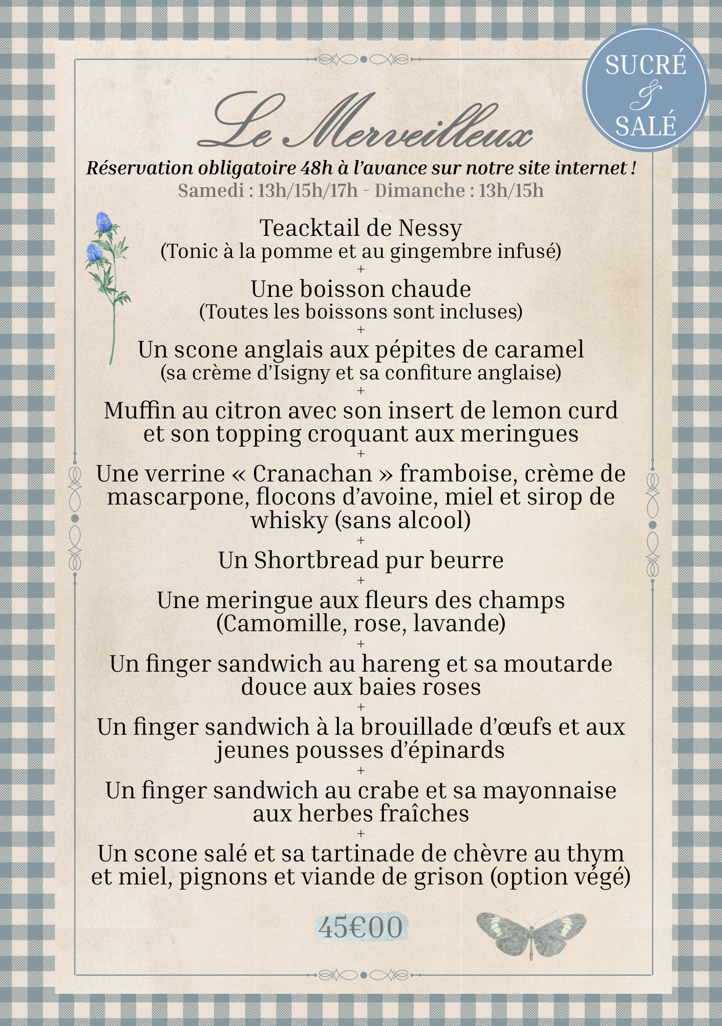 The “Le Merveilleux” Afternoon Tea is ONLY available by reservation 48 hours in advance (until Friday 10 a.m.).